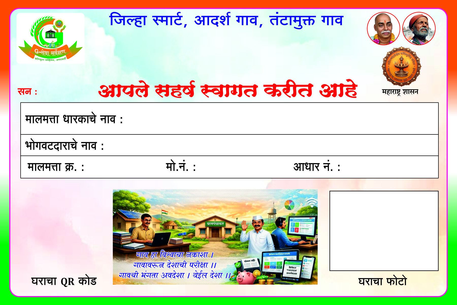 - ग्रामसभा व डिजिटल तंत्रज्ञानाद्वारे पारदर्शक व उत्तरदायी प्रशासन राबवणे.